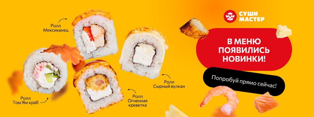 Скачайте новое мобильное приложение "Суши Мастер" и получите 10% скидки на первый заказ.
