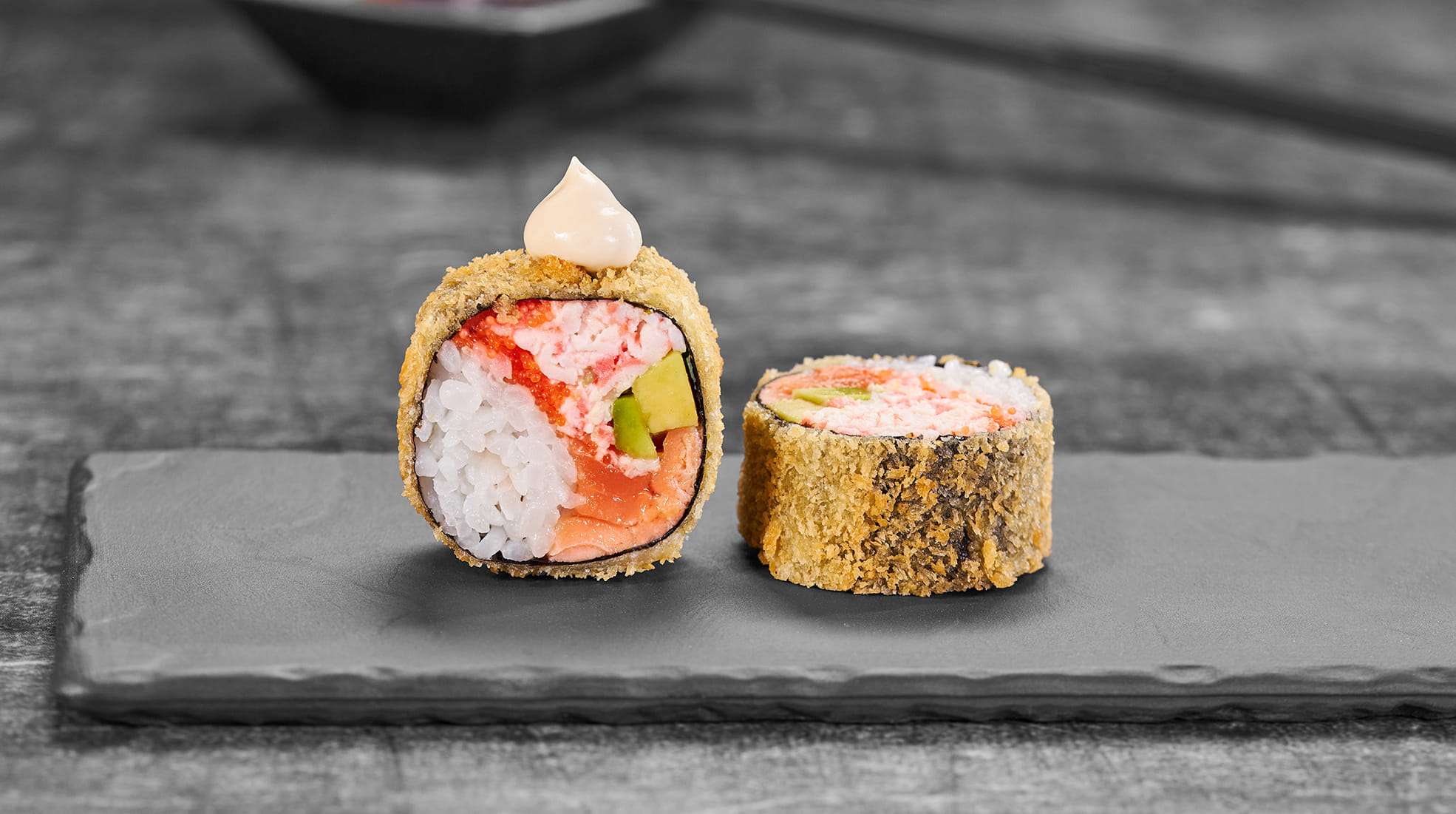 Состав: Лосось, краб-микс соус, оранжевая икра масаго, авокадо, темпурный кляр, панировочные сухари, японский соус, рис, нори *Внешний вид блюда может отличаться от фото на сайте.