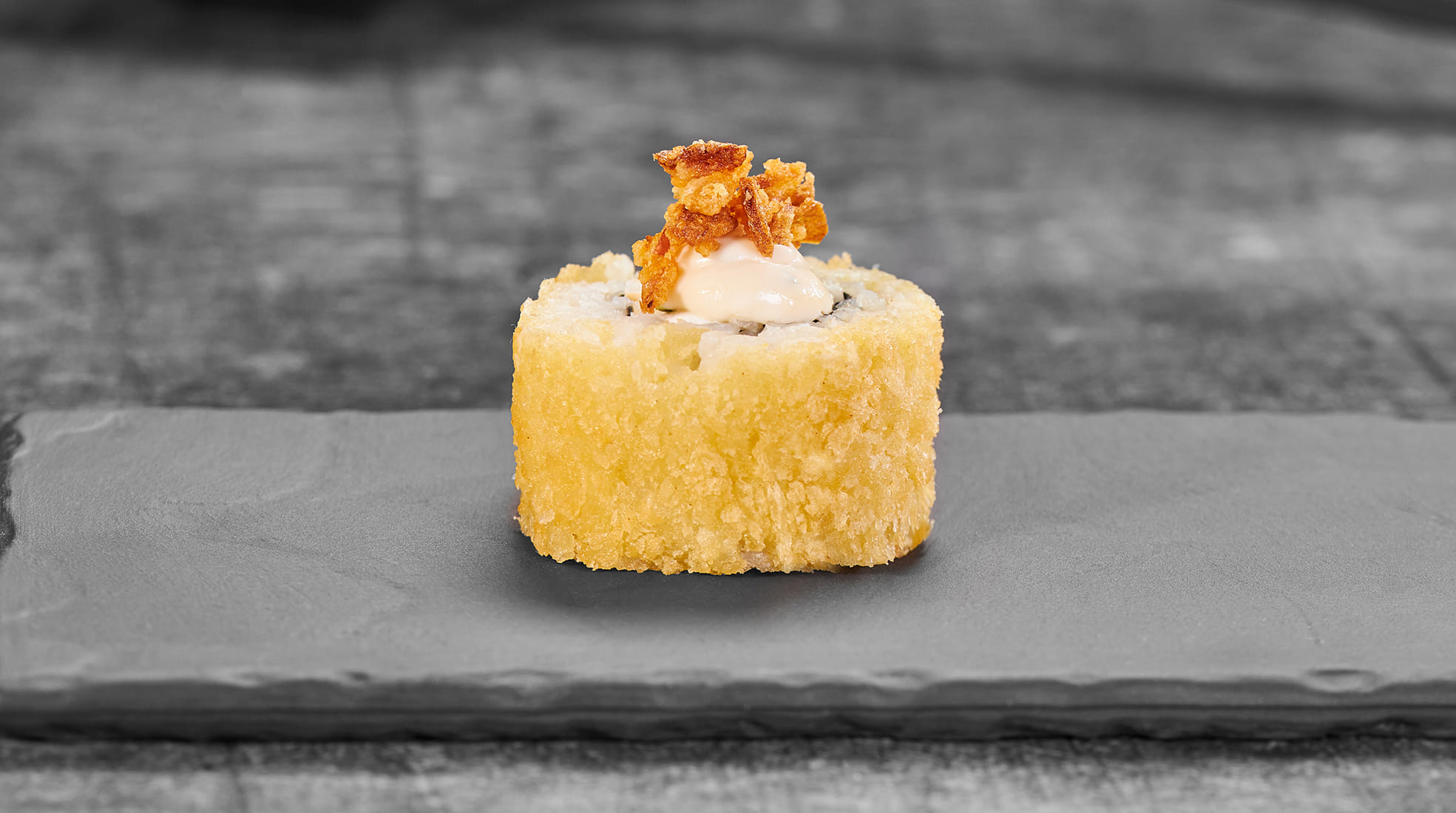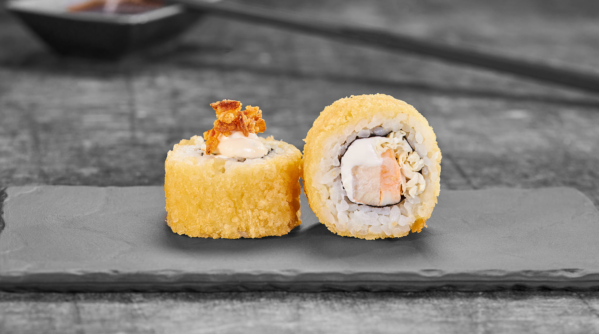 Состав: Курица, крем чиз, лук фри, цезарь соус, пекинская капуста, темпурный кляр, панировочные сухари, рис, нори *Внешний вид блюда может отличаться от фото на сайте.