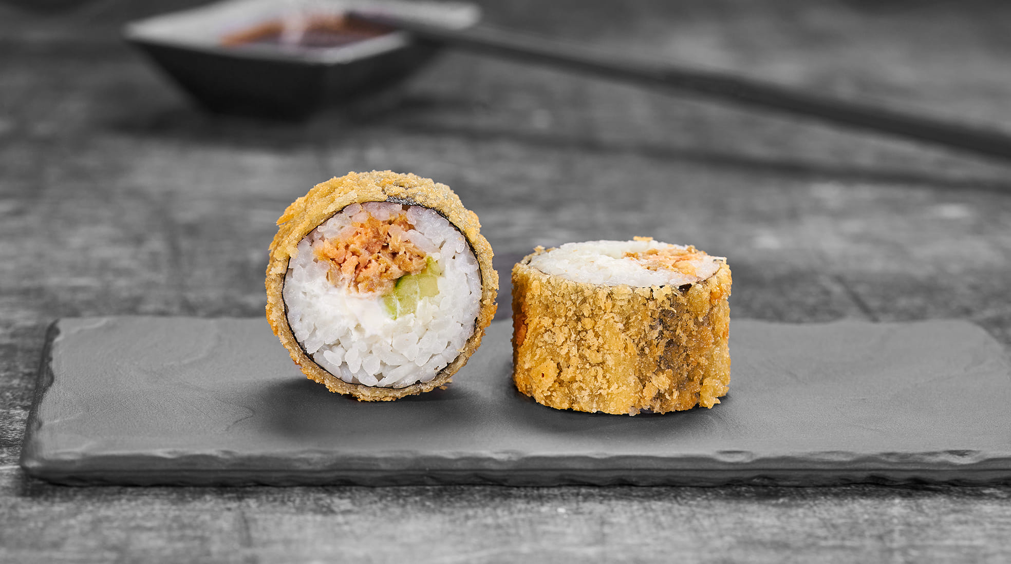 Состав: Лосось терияки, крем чиз, огурец, темпурный кляр, панировочные сухари, рис, нори *Внешний вид блюда может отличаться от фото на сайте.
