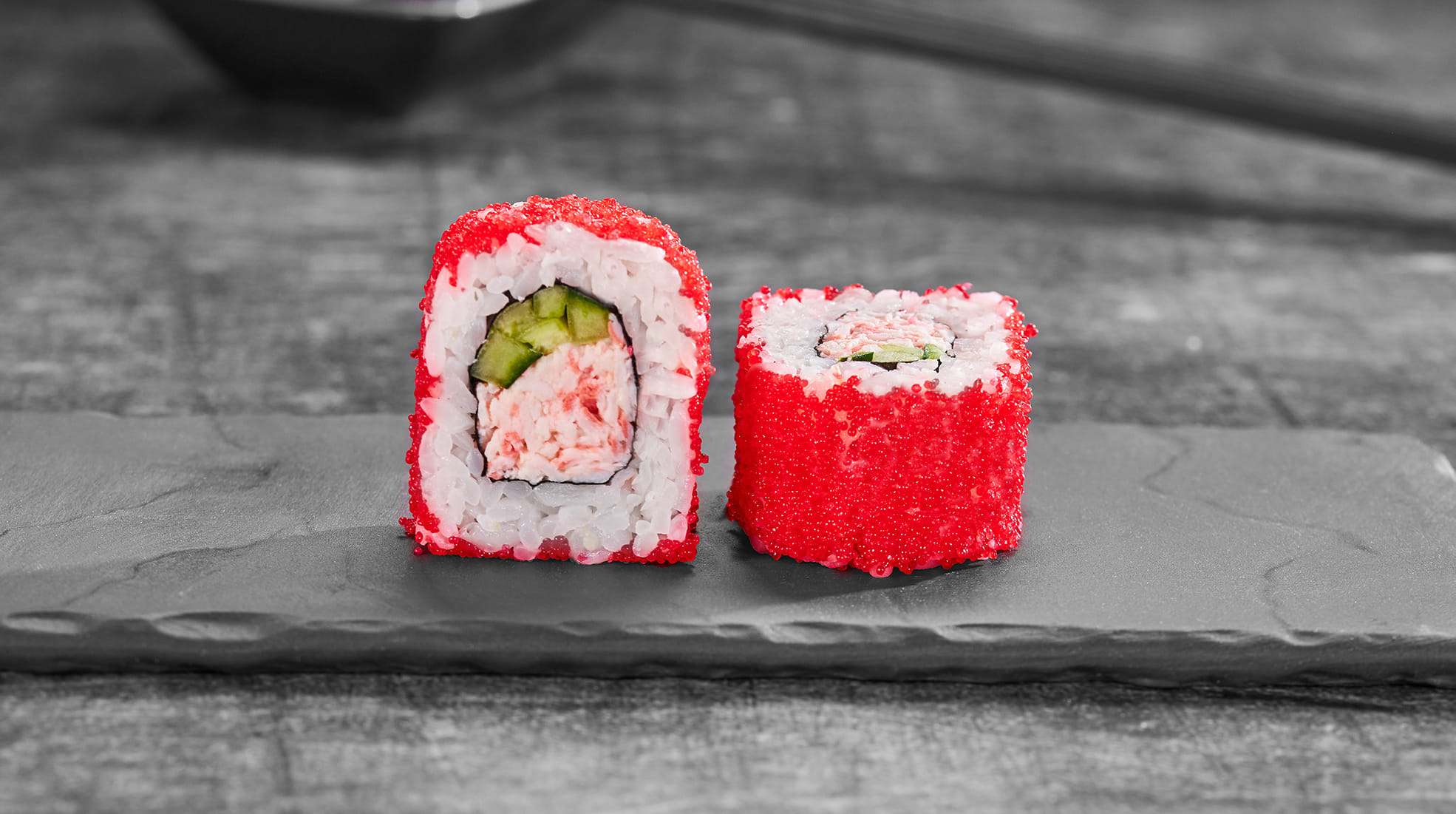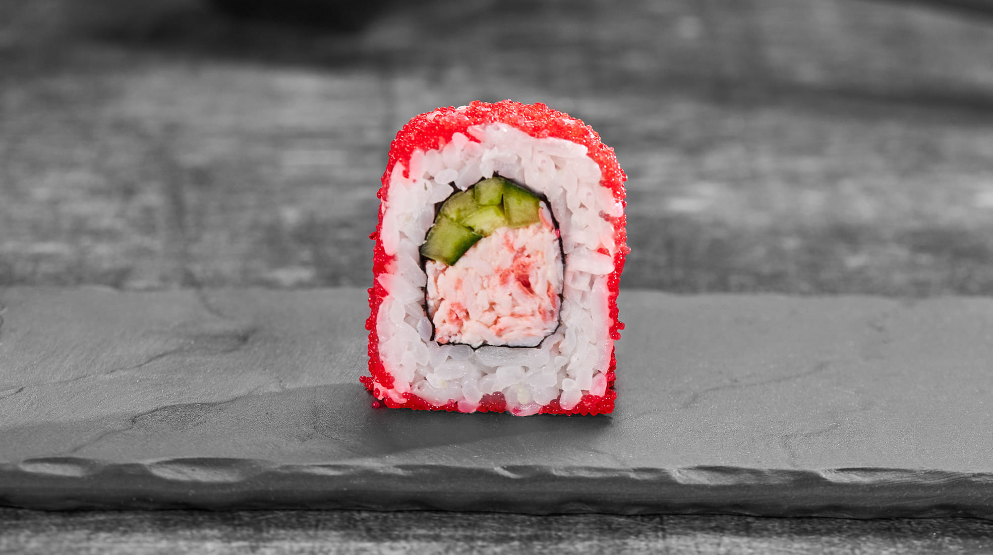 Состав: Краб-микс соус, огурец, красная икра масаго, рис, нори *Внешний вид блюда может отличаться от фото на сайте.