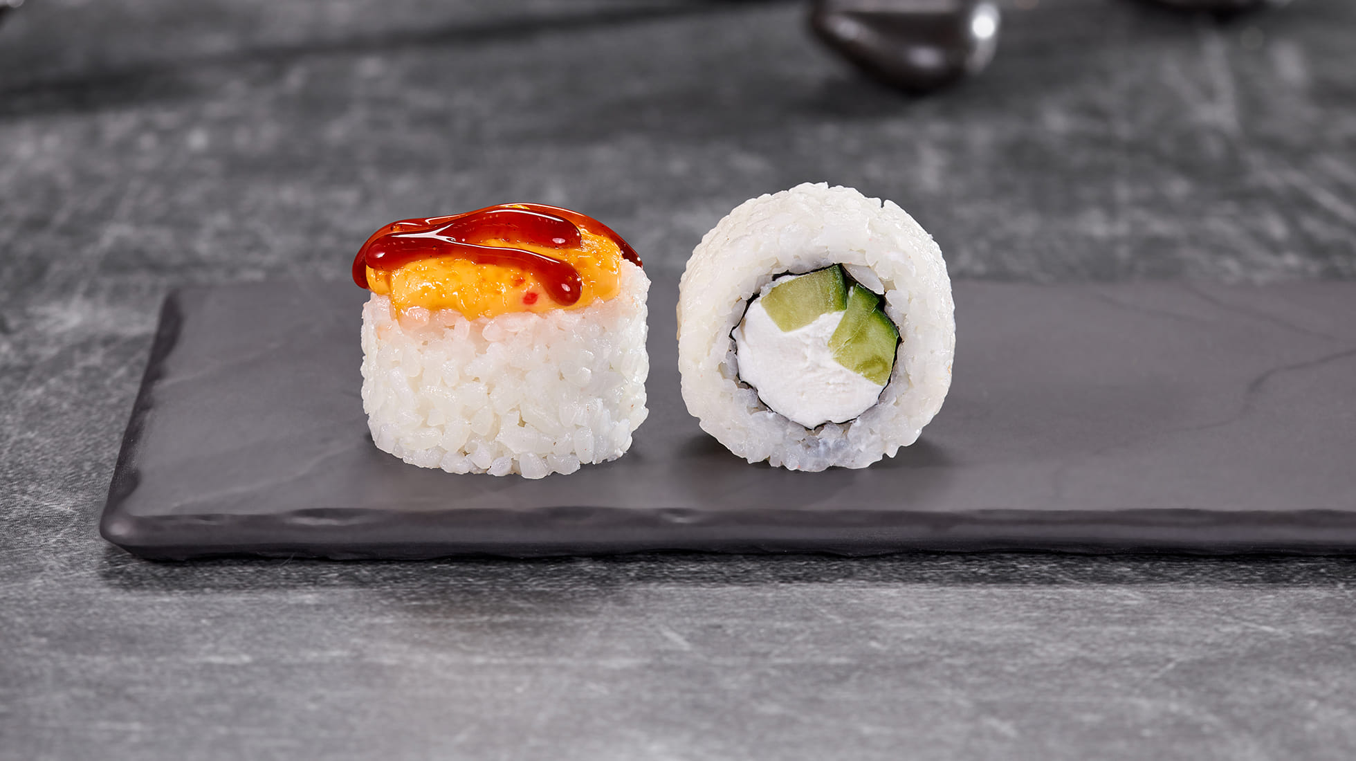 Состав: Крем чиз, огурец, унаги соус, икорный соус, рис, нори. *Внешний вид блюда может отличаться от фото на сайте.