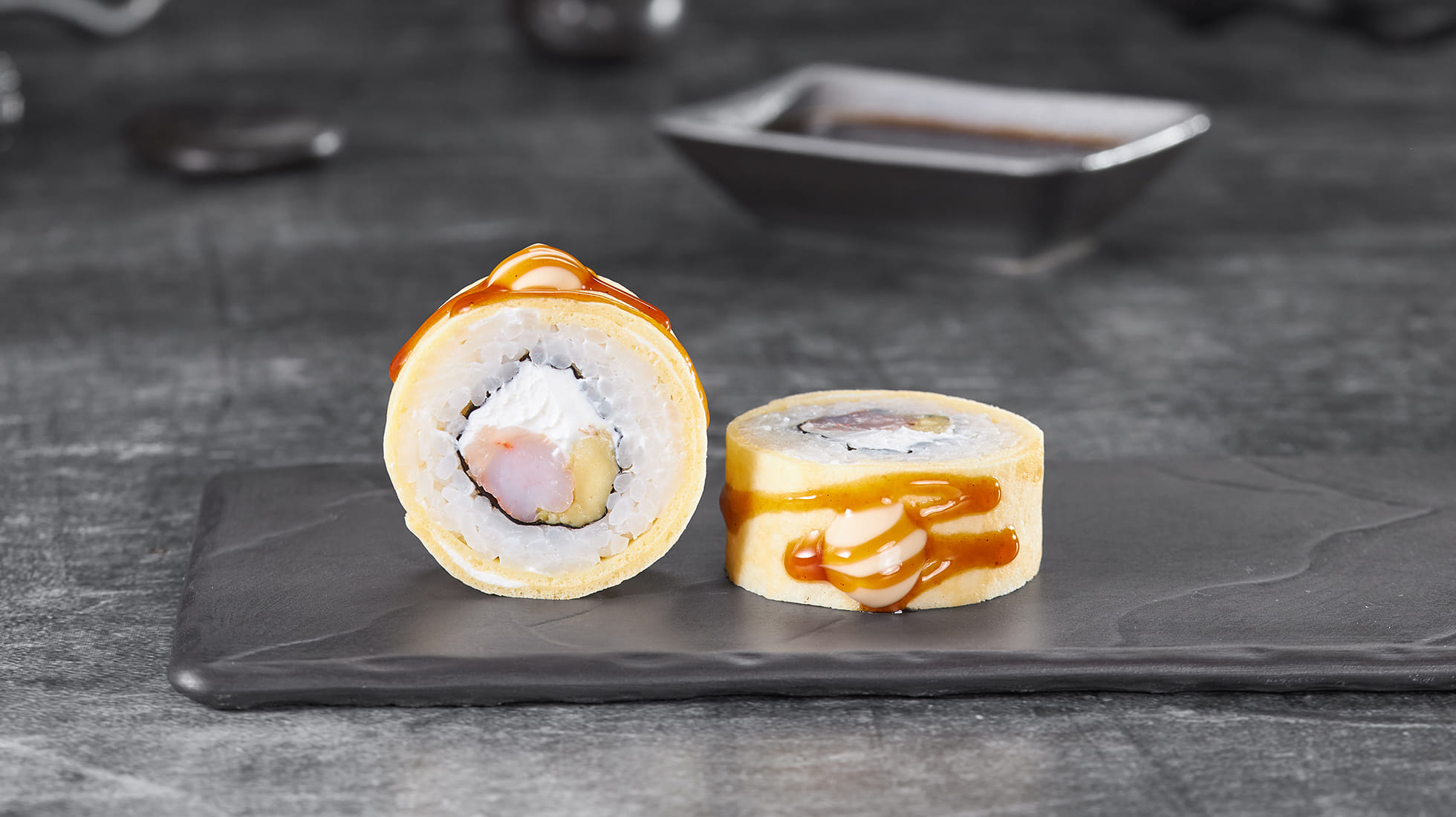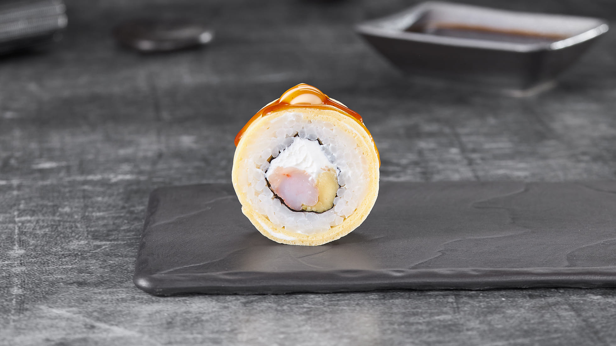 Состав: Креветки, авокадо, крем чиз, блин томаго, соус японский майонез, соус унаги, рис, нори. *Внешний вид блюда может отличаться от фото на сайте.