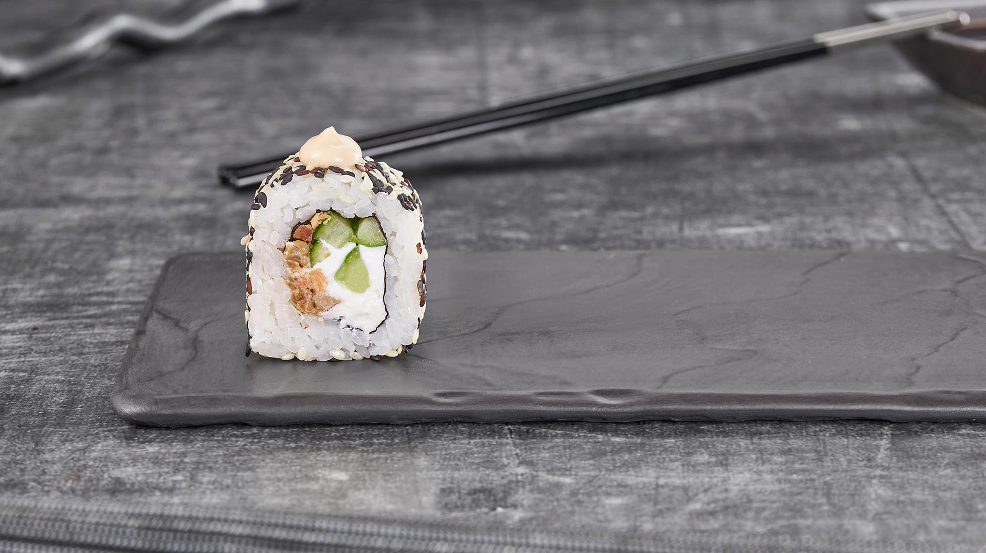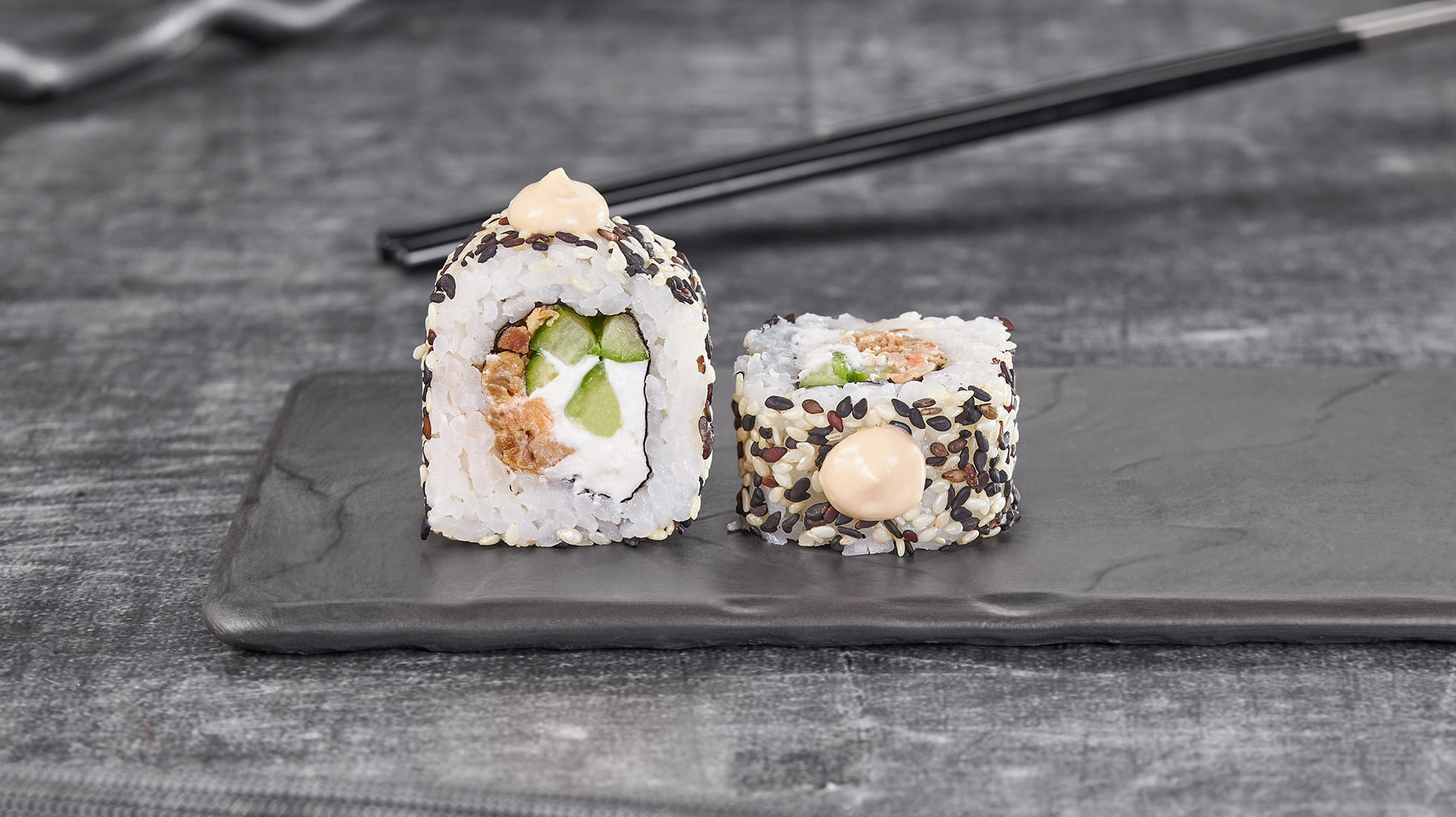 Состав: Лосось терияки, крем чиз, огурцы, соус японский майонез, кунжут, рис, нори *Внешний вид блюда может отличаться от фото на сайте.