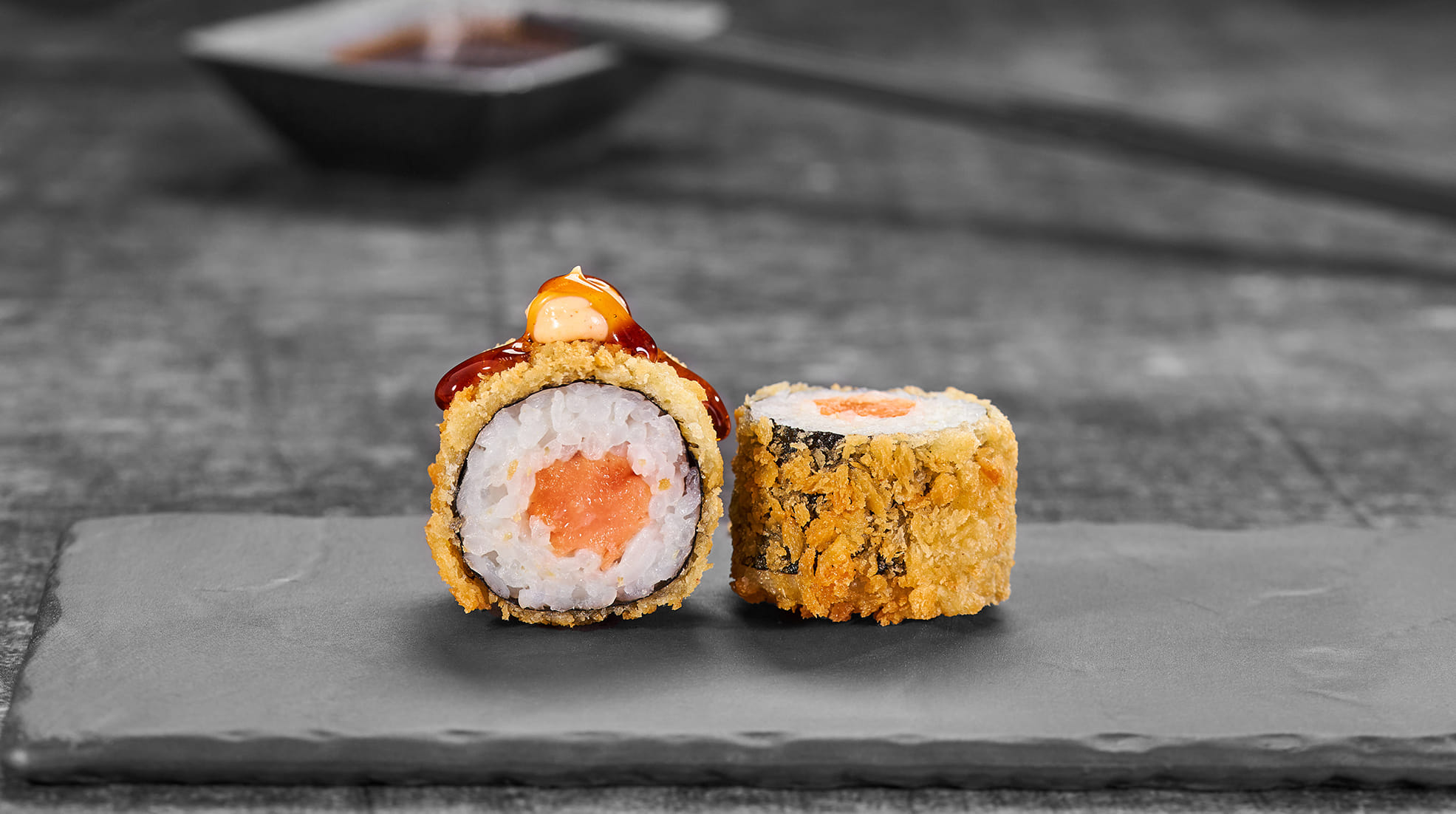 Состав: Лосось, спайси соус, унаги соус, темпурный кляр, панировочные сухари, рис, нори *Внешний вид блюда может отличаться от фото на сайте.