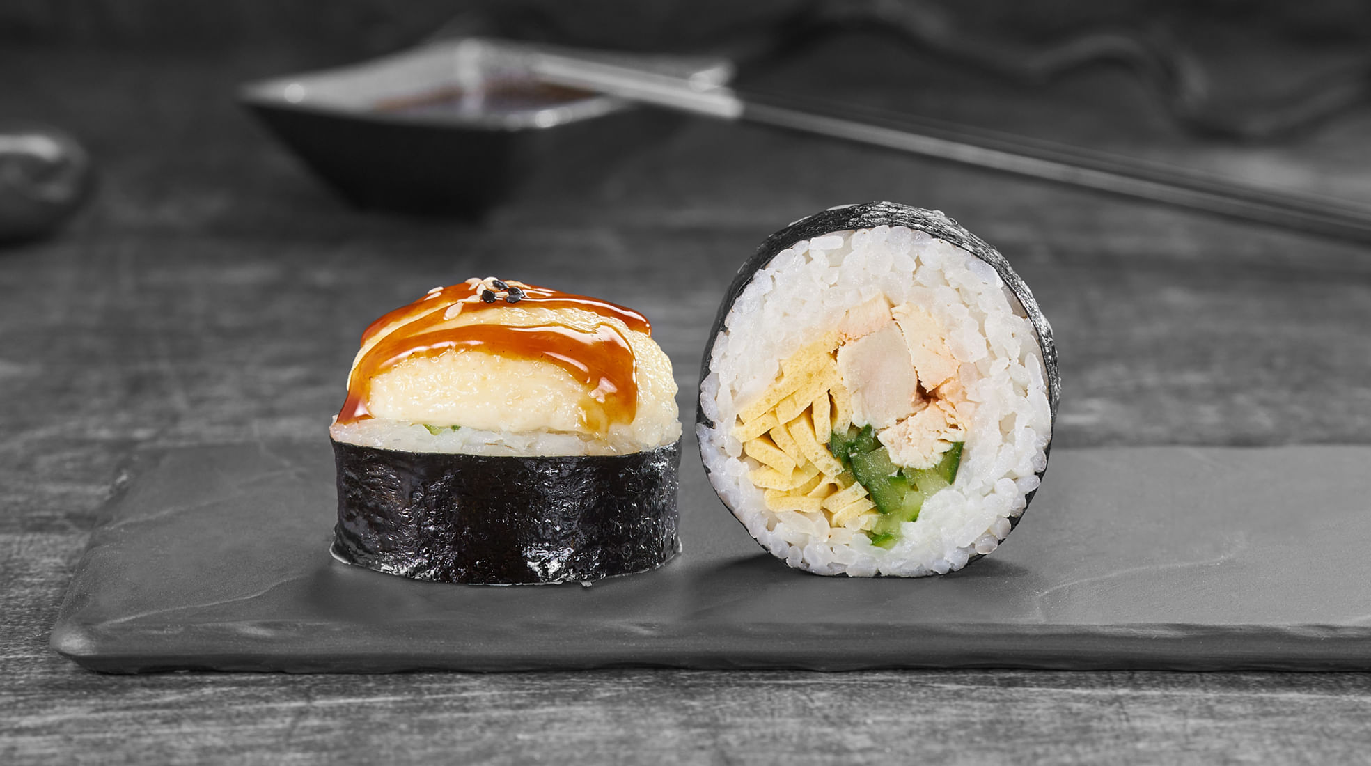 Состав: Блин тамаго, курица, японский соус, монако соус, унаги соус, кунжут, огурец, рис, нори. *Внешний вид блюда может отличаться от фото на сайте.