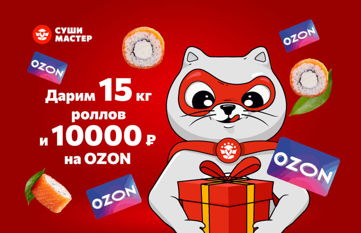 Каждый месяц дарим 15 кг роллов и 10 000 ₽ на OZON ;)