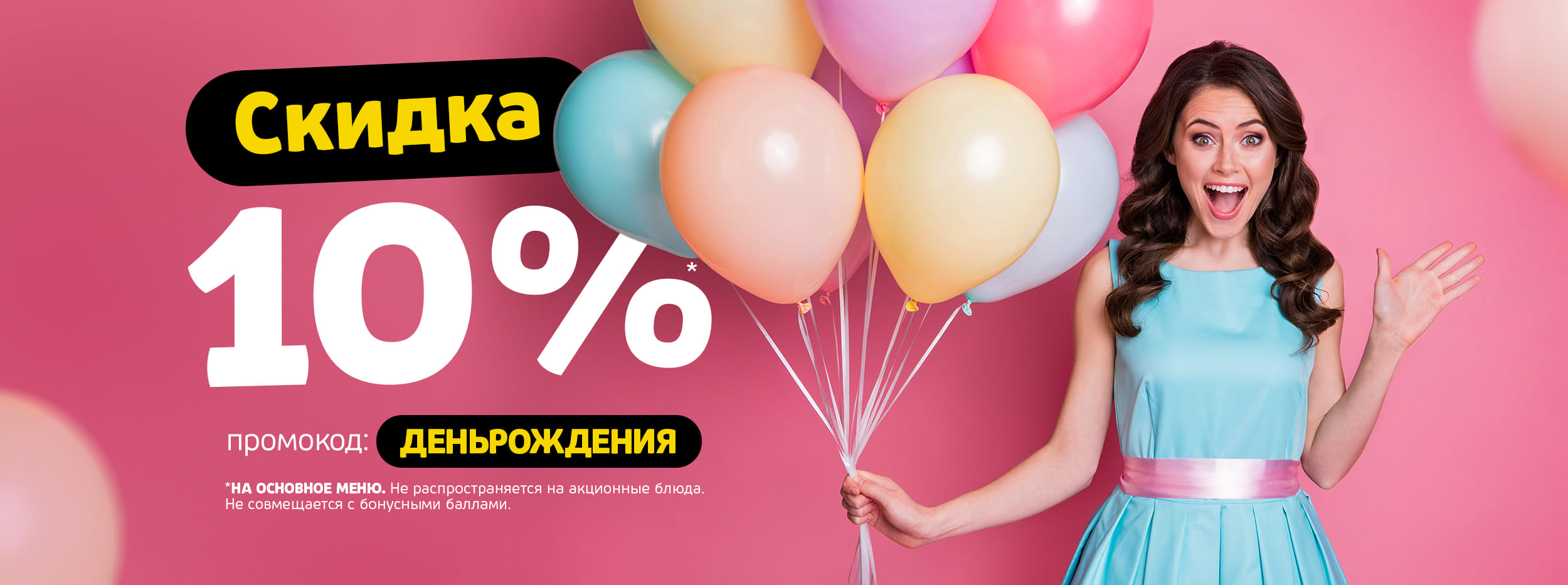 Дарим скидку 10% всем именинникам на основное меню!Промокод: ДЕНЬРОЖДЕНИЯ (не забудьте эти волшебные слова, когда будете делать заказ, иначе скидки не будет)